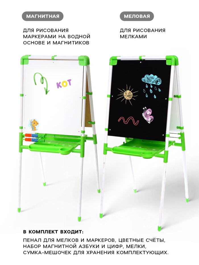 Мольберт детский двусторонний «Доска знаний», регулируется по высоте, учебные принадлежности, салатовый — Характеристики