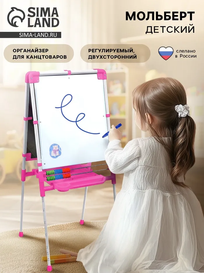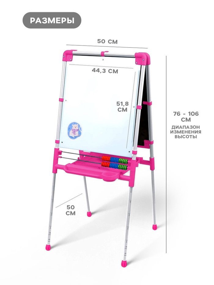 Мольберт двусторонний регулируется по высоте 1, цвет розовый — Характеристики