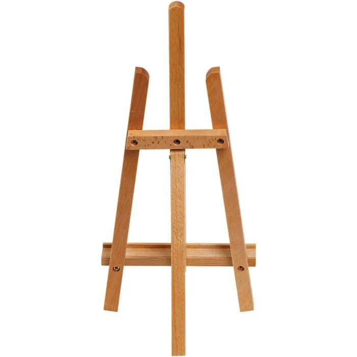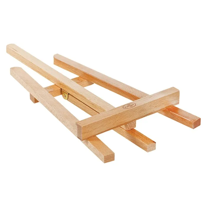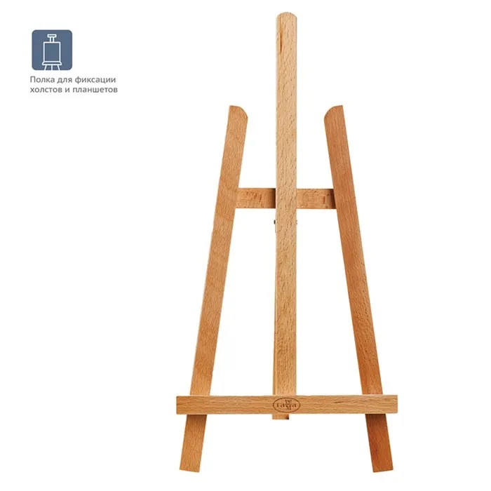 Настольный мольберт лира ГАММА «Студия» – простая классическая форма, которая подходит для работ небольших форматов. Размер мольберта – 19*18*40 см, максимальный размер холста – 30 см.Мольберт имеет плавную регулировку наклона. Он подходит для обучения живописи и демонстрации работ. Мольберт устанавливается на стол или другую рабочую поверхность. Изготовлен из лакированного бука.