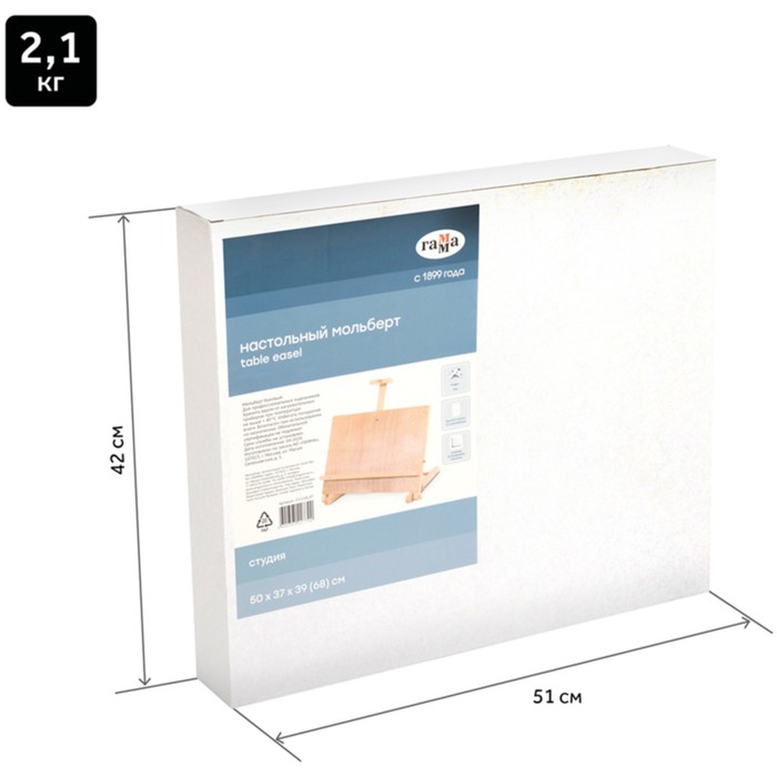 Мольберт настольный «Студийный», 500(680) х 390 х 370 мм с планшетом и бегунком Гамма "Студия", бук — Характеристики