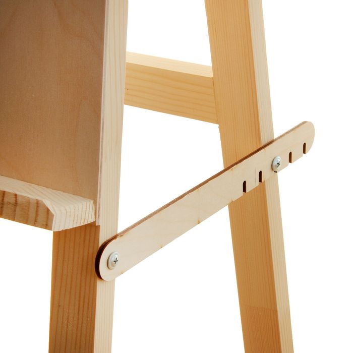 Напольный мольберт ""Хлопушка""- оптимальное соотношение функциональности и цены для начинающих художников и первого знакомства со знаковой живописью. Мольберт имеет простую конструкцию: пять положениий угла наклона рабочей поверхности, полка с бортиком для художественных материалов. Бумагу на планшете можно закрепить кнопками или малярным скотчем. Мольберт подходит для занятий в студии и дома, он складывается и не занимает много места при хранении. Изготовлен в России из неокрашенной доски и фанеры высшего сорта сибирской сосны. При таком тщательном отборе материалов вы можете быть уверены, что конструкция не деформируется со временем и не рассохнется. Все поверхности зашлифованы для безопасности и комфорта работы художника.