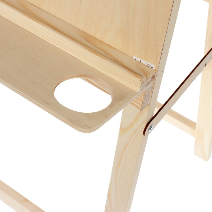 Напольный мольберт ""Хлопушка""- оптимальное соотношение функциональности и цены для начинающих художников и первого знакомства со знаковой живописью. Мольберт имеет простую конструкцию: пять положениий угла наклона рабочей поверхности и полка с бортиком для художественных материалов. Бумагу на планшете можно закрепить кнопками или малярным скотчем, так же при необходимости планшет мжно снять. Мольберт подходит для занятий в студии и дома, он складывается и не занимает много места при хранении. Изготовлен в России из неокрашенной доски и фанеры высшего сорта сибирской сосны. При таком тщательном отборе материалов вы можете быть уверены, что конструкция не деформируется со временем и не рассохнется. Все поверхности зашлифованы для безопасности и комфорта работы художника.