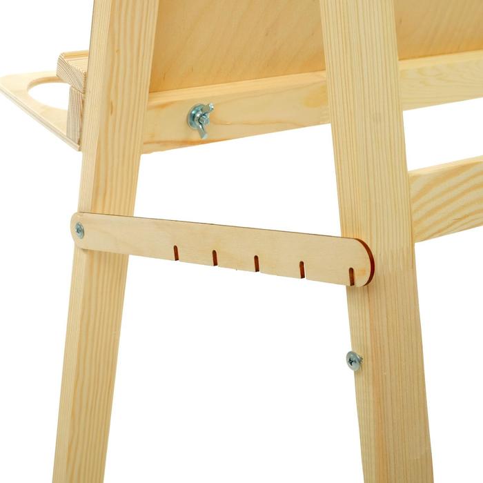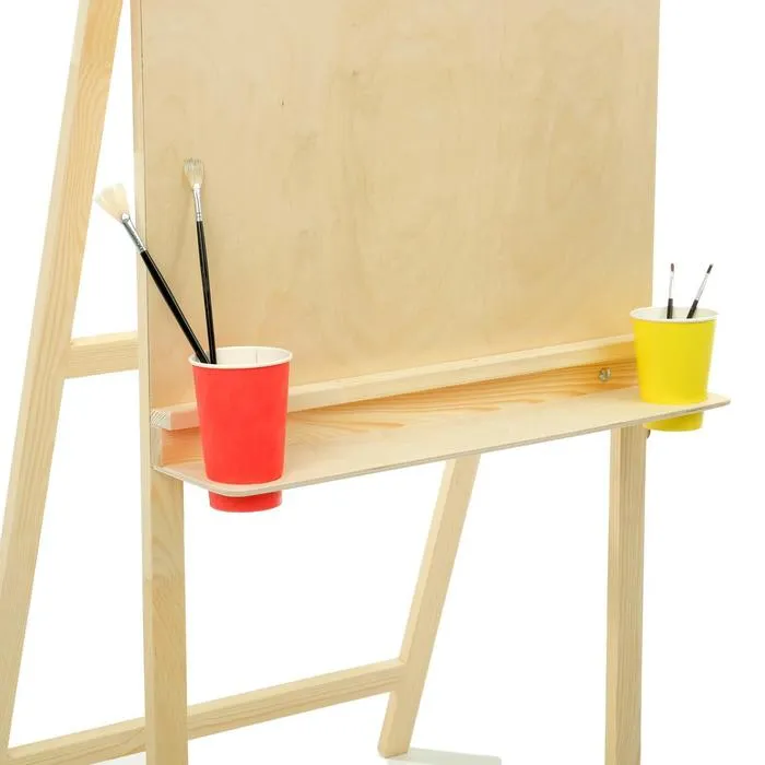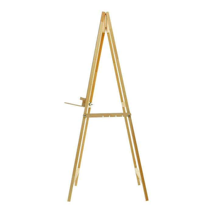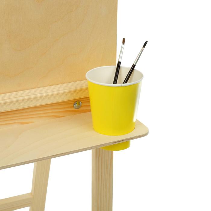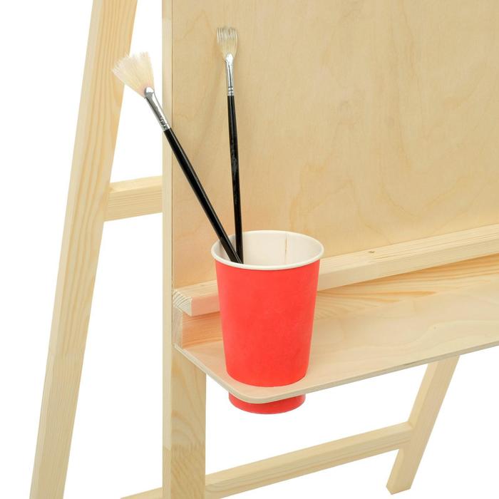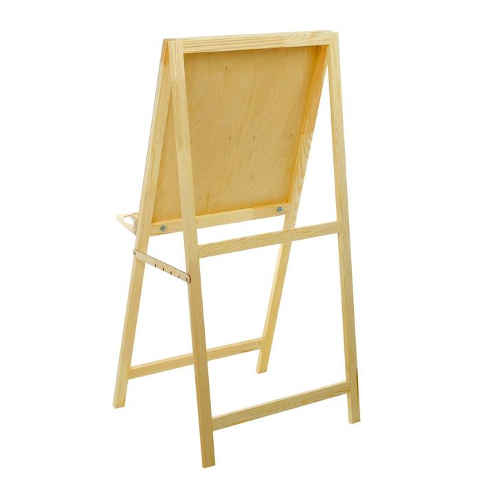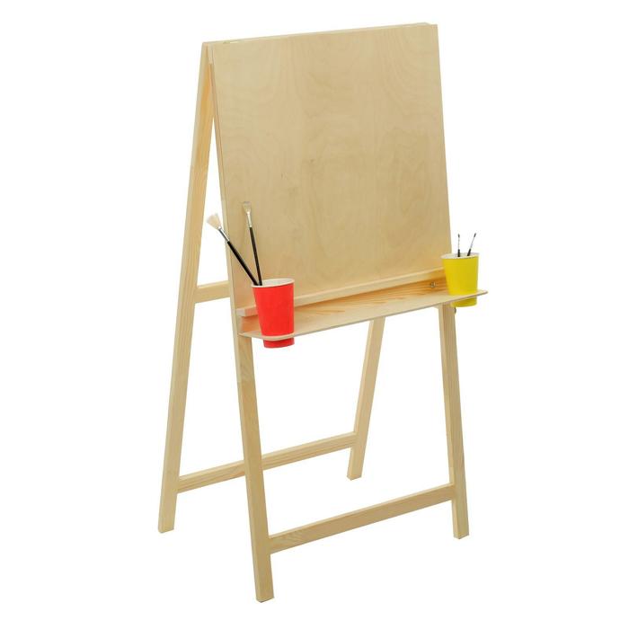 Напольный мольберт ""Хлопушка""- оптимальное соотношение функциональности и цены для начинающих художников и первого знакомства со знаковой живописью. Мольберт имеет простую конструкцию: пять положениий угла наклона рабочей поверхности и расширенная полка для художественных материалов с двумя отверстиями для стаканов. Бумагу на планшете можно закрепить кнопками или малярным скотчем, так же при необходимости планшет мжно снять. Мольберт подходит для занятий в студии и дома, он складывается и не занимает много места при хранении. Изготовлен в России из неокрашенной доски и фанеры высшего сорта сибирской сосны. При таком тщательном отборе материалов вы можете быть уверены, что конструкция не деформируется со временем и не рассохнется. Все поверхности зашлифованы для безопасности и комфорта работы художника.
