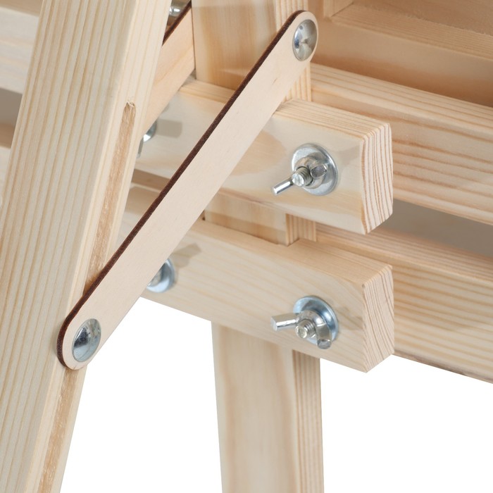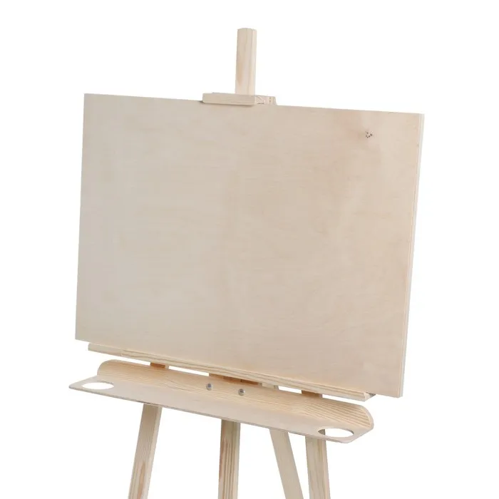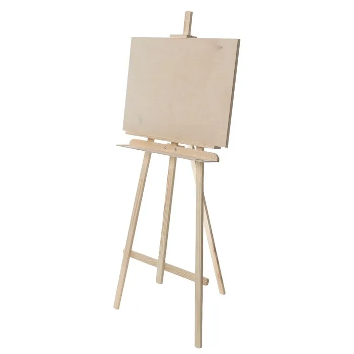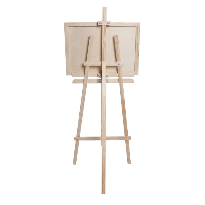 Классическая модель типа ""Лира"", предназначена для работы на подрамнике с холстом или на планшете (любые виды бумаг). Выполнен из натуральной высококачественной доски сосны. Угол наклона опорной ноги можно изменять, высота полки и фиксатора холста также регулируется. Экономичный вариант мольберта подходит для работы в студии, демонстрации картин, а так же как предмет интерьера. Дополнительно имеет отверстие для стакана.В комплект входит планшет.