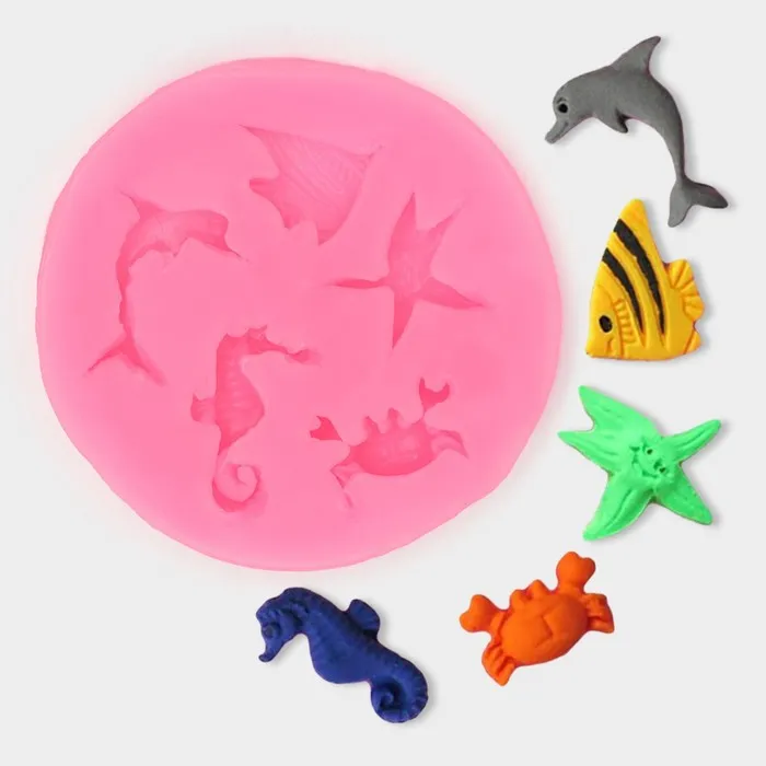 Молд для заливки «Морские обитатели», силикон, 5,8×5,8×0,8 см, розовый