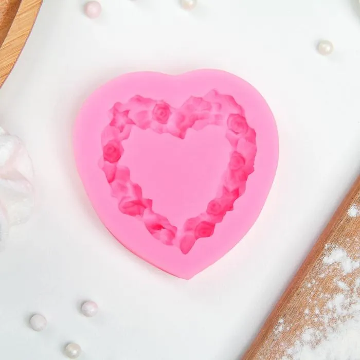 Молд для заливки «Сердце в розочках», силикон, 7×7 см, розовый — Характеристики