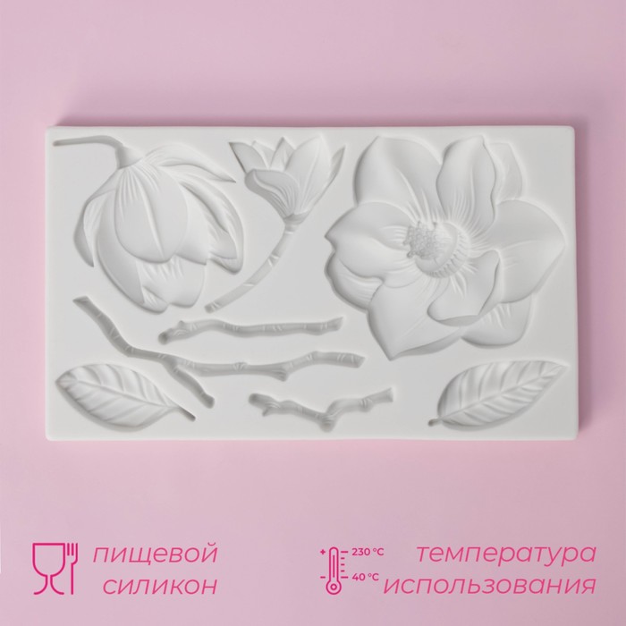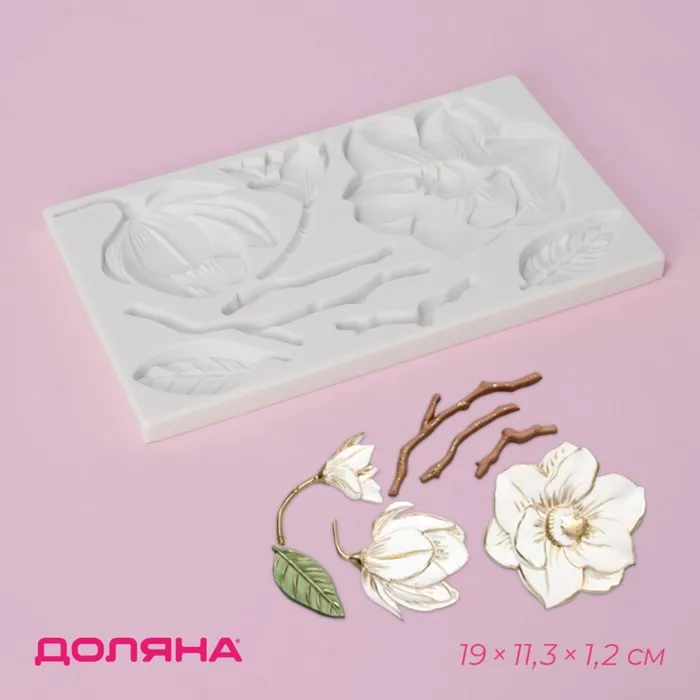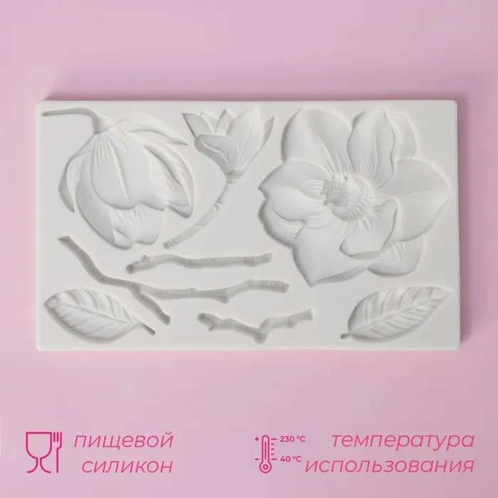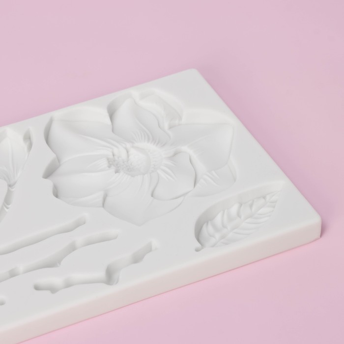 Молд Доляна «Магнолия», силикон, 19×11,3×1,2 см, цвет белый — Характеристики