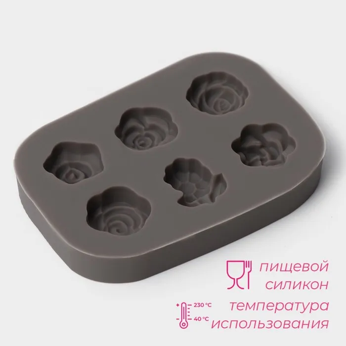 Молд Доляна «Розочки», силикон, 6,5×4,5×0,9 см, цвет серый — Характеристики
