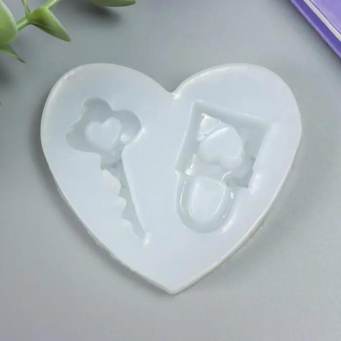 Молд силикон «Ключик и замочек с сердцами», 2 предмета, 6.5×6×1 см — Характеристики