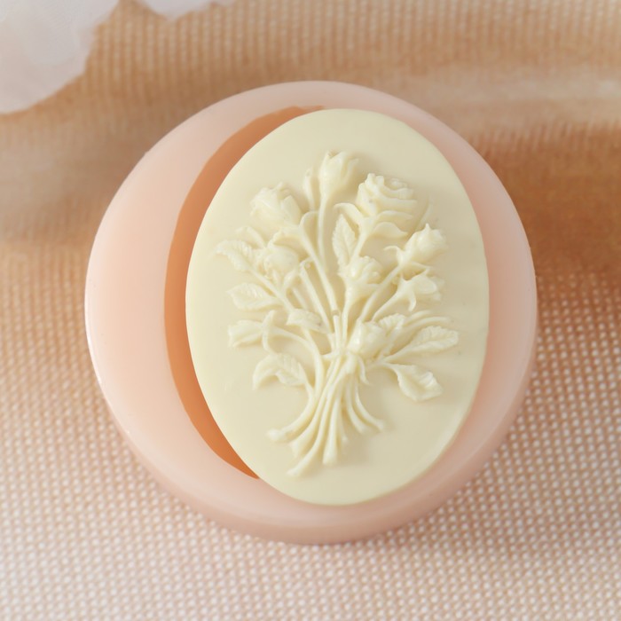 Силиконовый молд, форма для заливки «Овал с цветами», 3.9×2.9×0.7 см