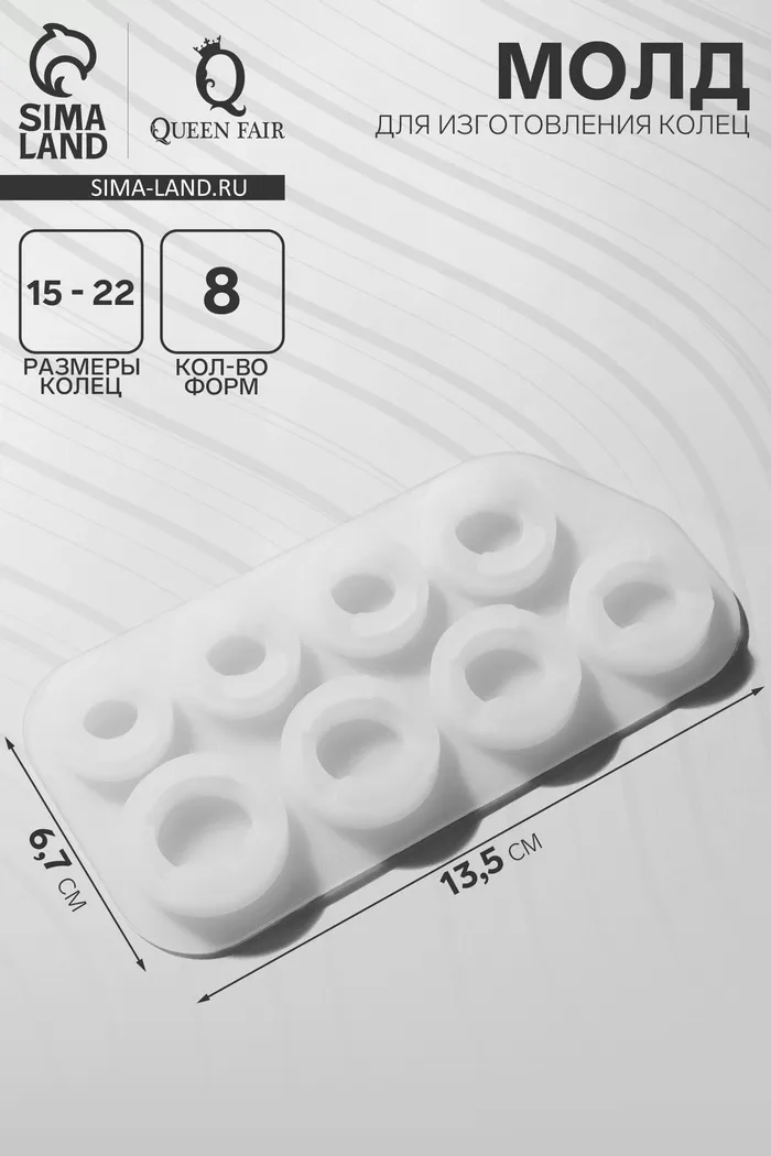 Молд силиконовый для изготовления колец из эпоксидной смолы, 8 форм, размеры колец 15-22 — Характеристики