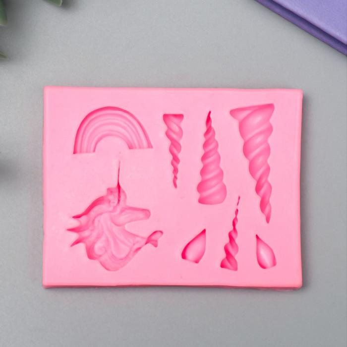 Силиконовый молд, форма для заливки «Единорог и рожки», 8 предметов, 0.8×5.5×7 см