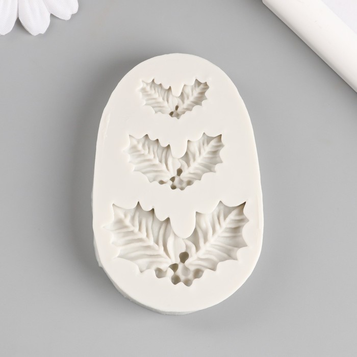 Силиконовый молд, форма для заливки «Еловые веточки с ягодками», 3 предмета, 8.3×5.5×1 см