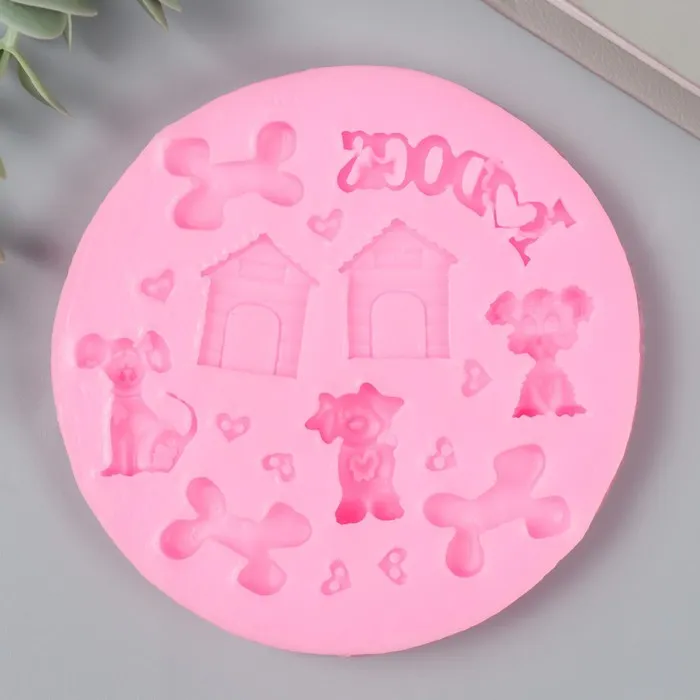 Молд силиконовый «Пёсики и будки» 17 предметов 1×8.8×8.8 см