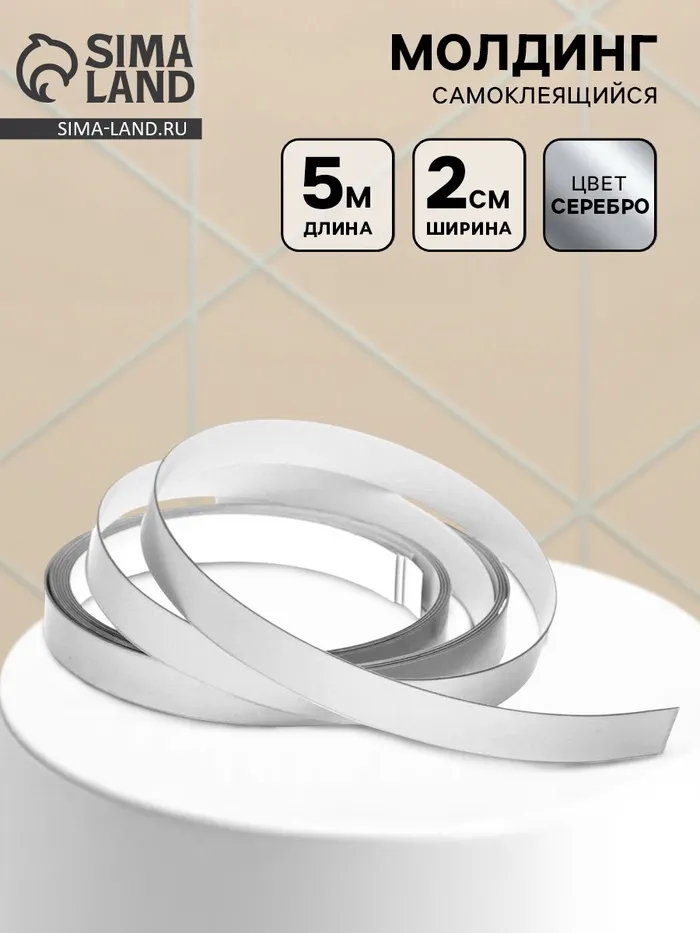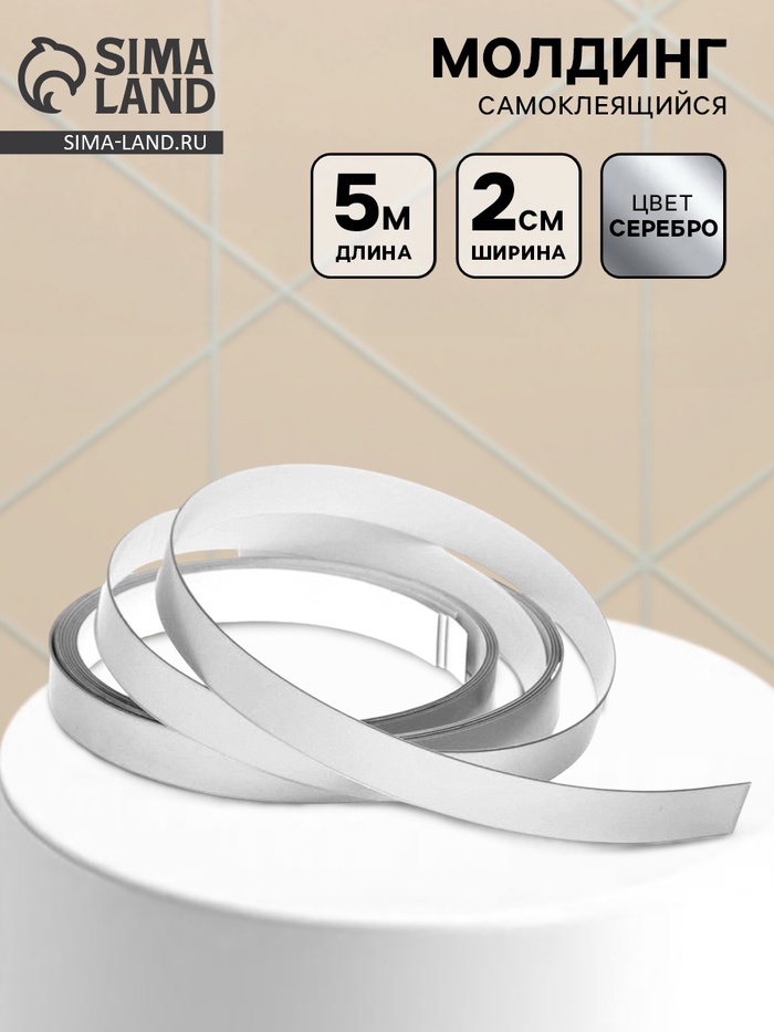 Молдинг самоклеящийся, 2 см × 5 м, цвет серебро — Характеристики