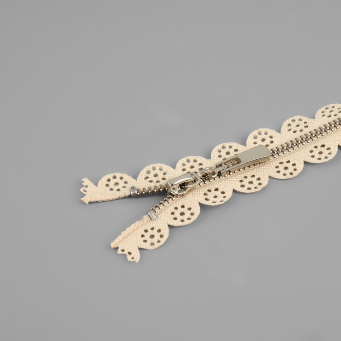 Молния металлическая, №3, неразъёмная, замок автомат, 60 см, бежевая