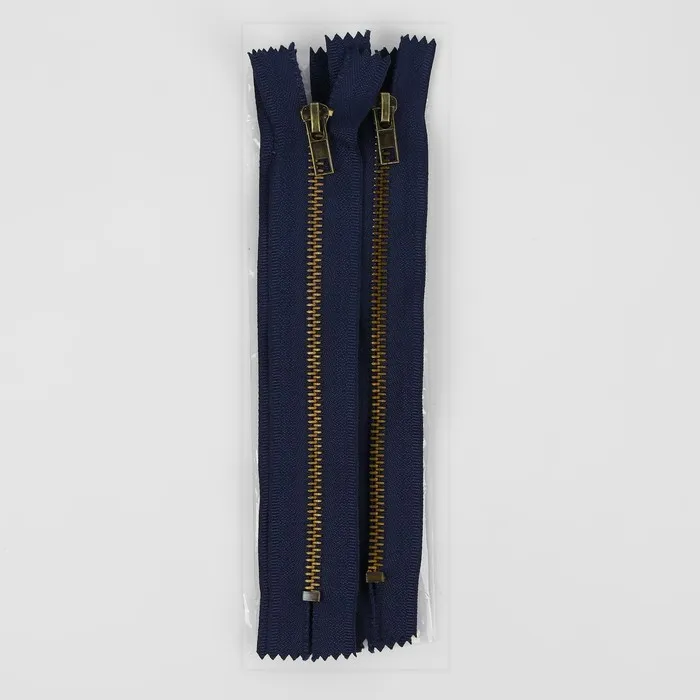 Молния металлическая, №5, неразъёмная, замок автомат, 18 см, тёмно-синяя