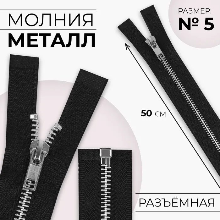Молния металлическая, №5, разъёмная, замок автомат, 50 см, чёрная — Характеристики