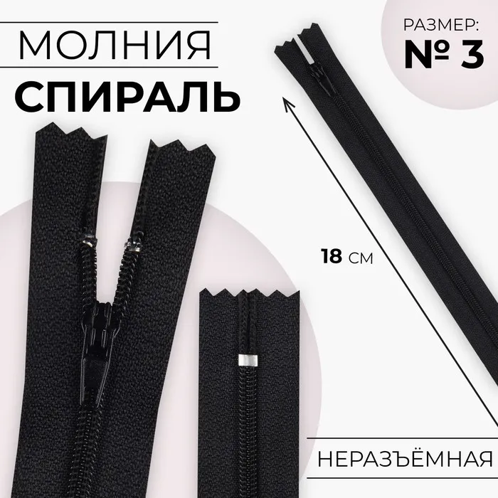 Молния «Спираль», №3, неразъёмная, замок автомат, 18 см, цвет чёрный, цена за 1 штуку — Характеристики