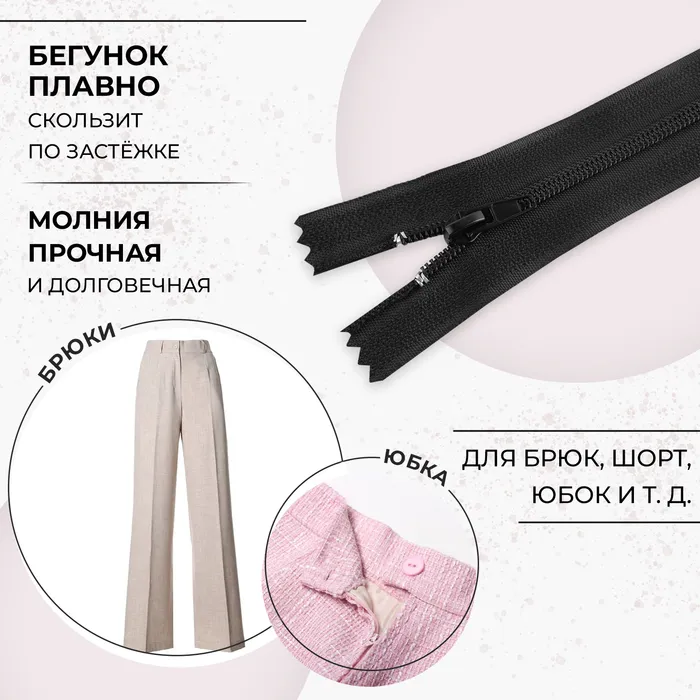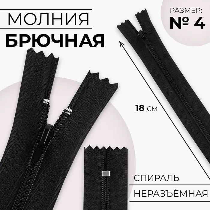 Молния «Спираль», №4, неразъёмная, брючная, замок автомат, 18 см, цвет чёрный, цена за 1 штуку — Характеристики