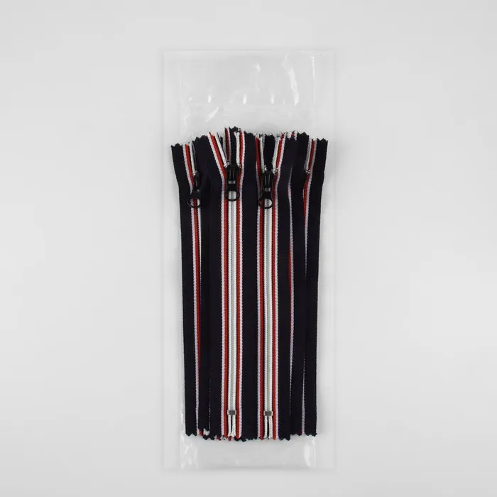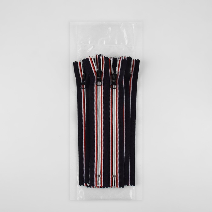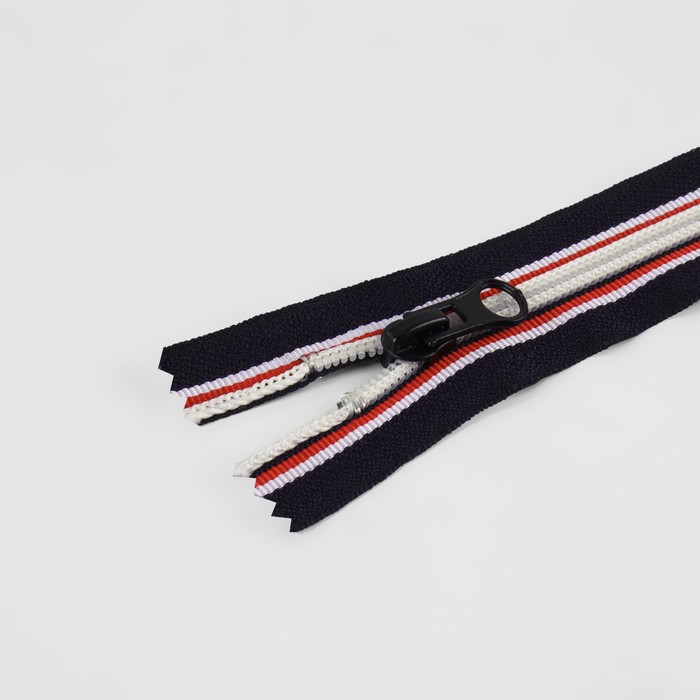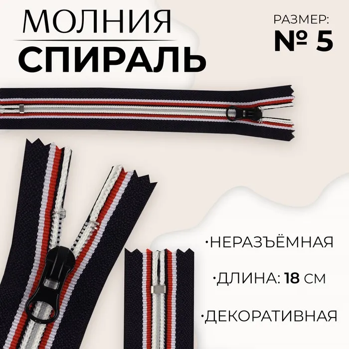 Молния «Спираль», №5, неразъёмная, замок автомат, 18 см, тёмно-синяя, красный, белый — Характеристики