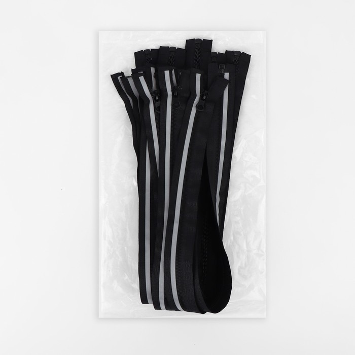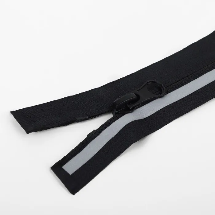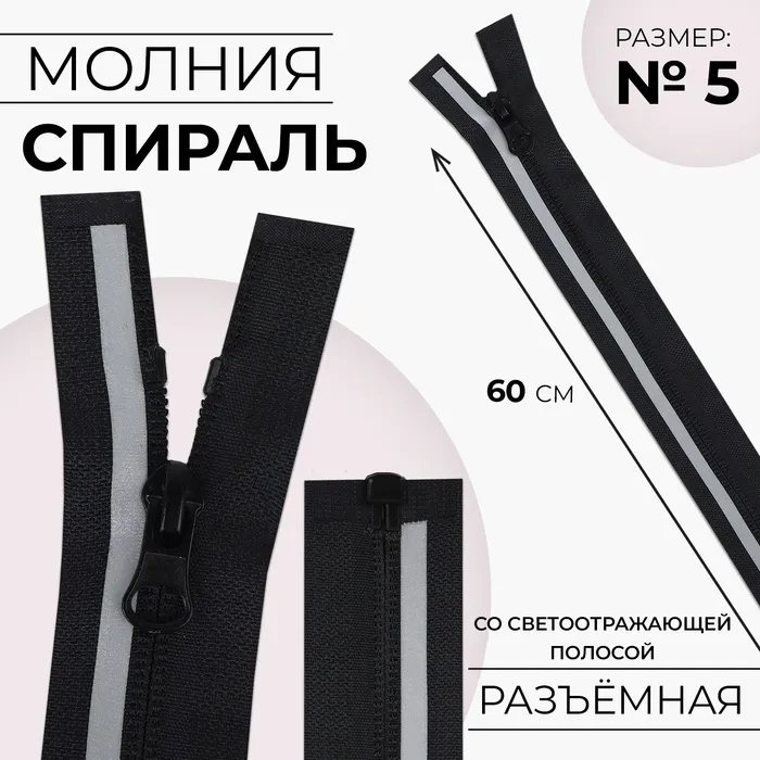 Молния «Спираль», №5, разъёмная, со светоотражающей полосой, замок автомат, 60 см, чёрная — Характеристики