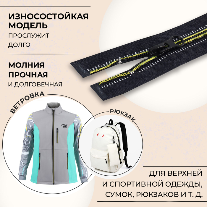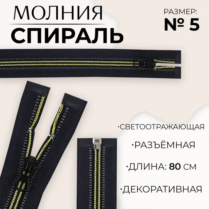 Молния «Спираль», №5, разъёмная, светоотражающая, замок автомат, 80 см, чёрная, зелёная — Характеристики