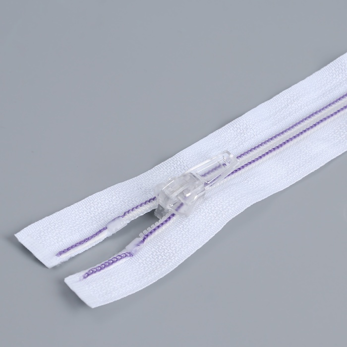 Молния «Спираль», №5, разъёмная, замок автомат, 40 см, белая, сиреневая — Характеристики