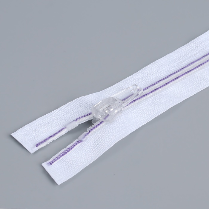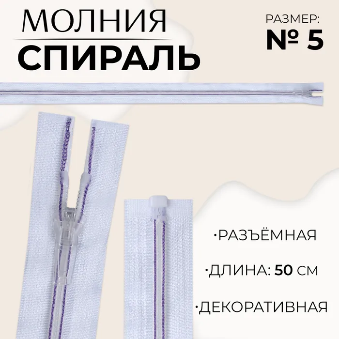 Молния «Спираль», №5, разъёмная, замок автомат, 50 см, белая, сиреневая — Характеристики
