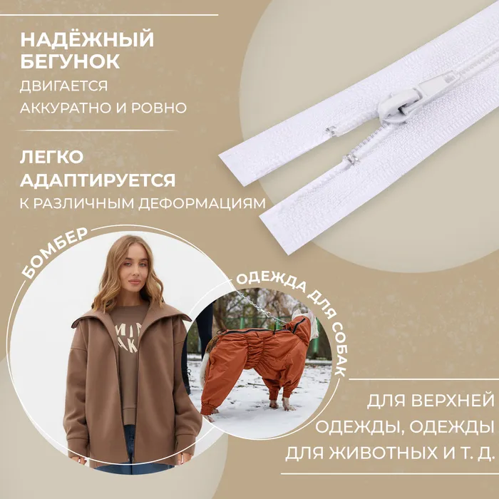 Молния «Спираль», №5, разъёмная, замок автомат, 70 см, белая — Характеристики