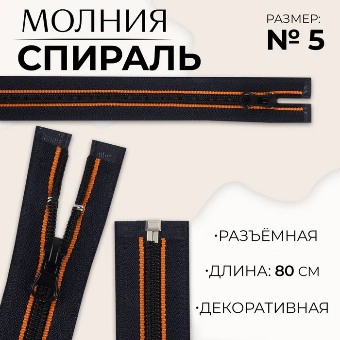 Молния «Спираль», №5, разъёмная, замок автомат, 80 см, оранжевая, тёмно-синяя — Характеристики