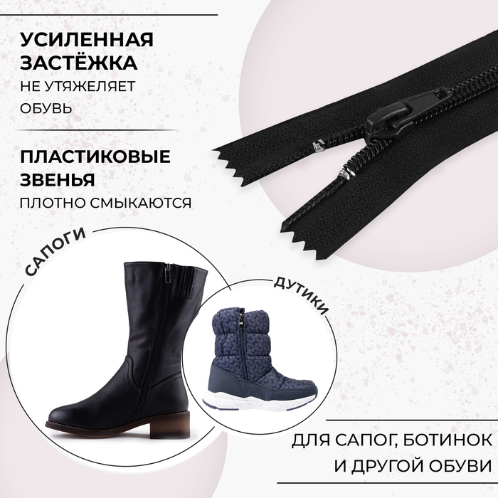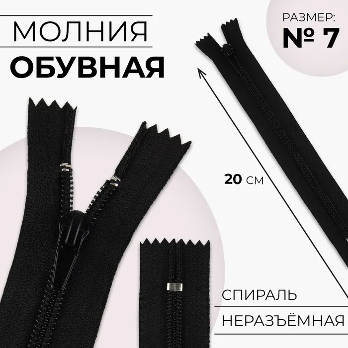Молния «Спираль», №7, неразъёмная, обувная, замок автомат, 20 см, цвет чёрный, цена за 1 штуку — Характеристики