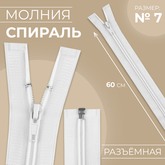 Молния «Спираль», №7, разъёмная, водонепроницаемая, замок автомат, 60 см, цвет чёрный — Характеристики