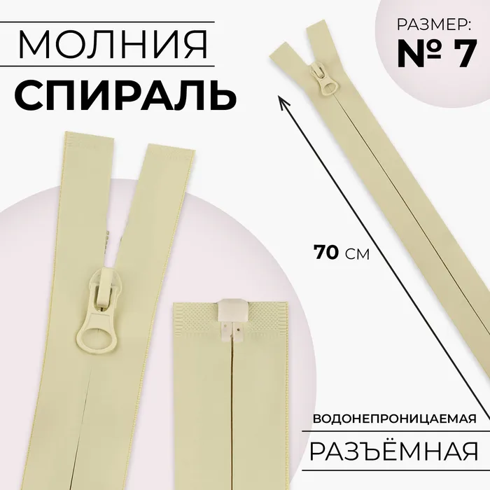 Молния «Спираль», №7, разъёмная, водонепроницаемая, замок автомат, 70 см, светло-бежевая — Характеристики