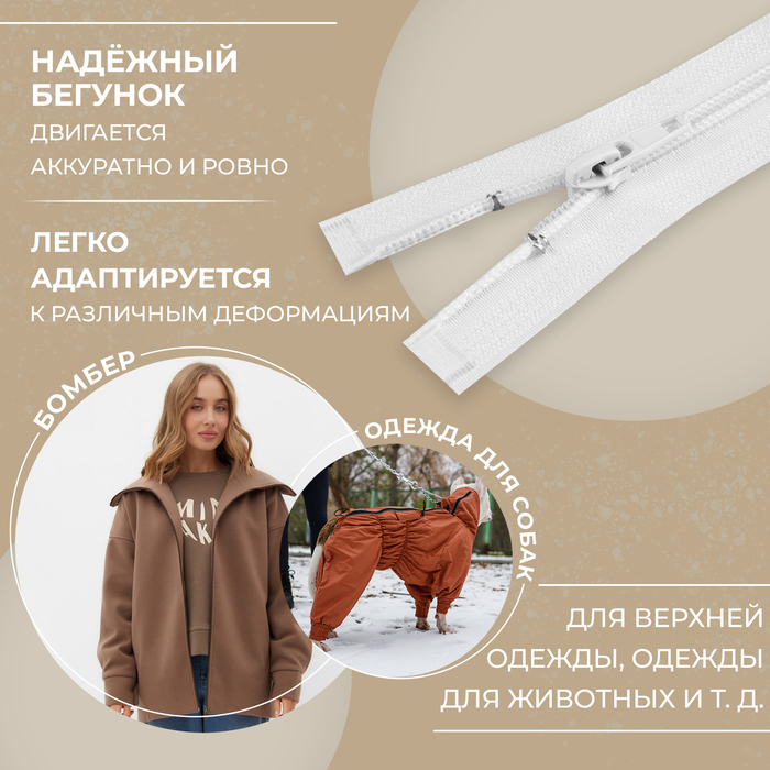 Молния «Спираль», №7, разъёмная, замок автомат, 60 см, белая — Характеристики