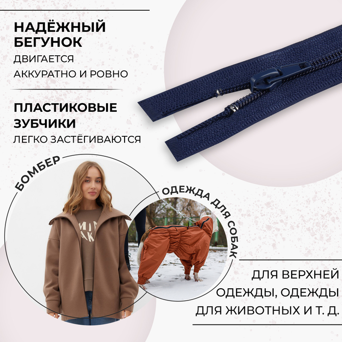 Молния «Спираль», №7, разъёмная, замок автомат, 60 см, тёмно-синяя — Характеристики