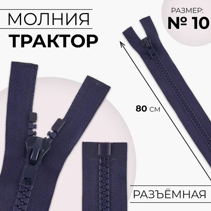 Молния «Трактор», №10, разъёмная, замок автомат, 80 см, тёмно-синяя — Характеристики