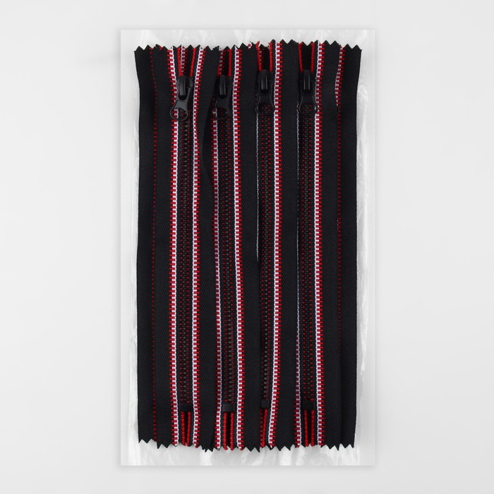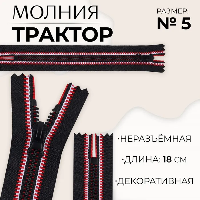 Молния «Трактор», №5, неразъёмная, замок автомат, 18 см, чёрная, красная, белая — Характеристики