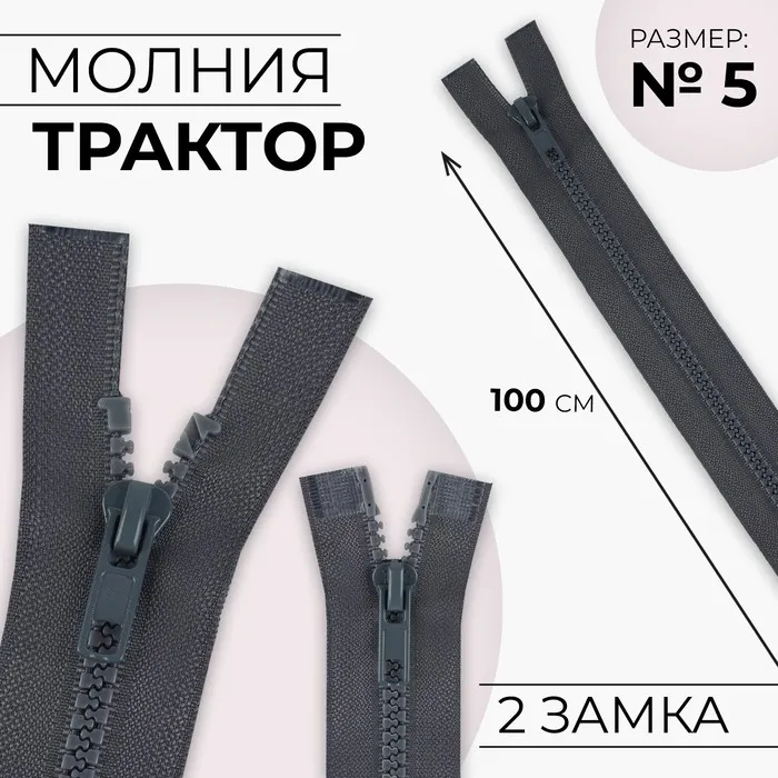 Молния «Трактор», №5, разъёмная, 2 замка, замки автомат, 100 см, тёмно-серая — Характеристики