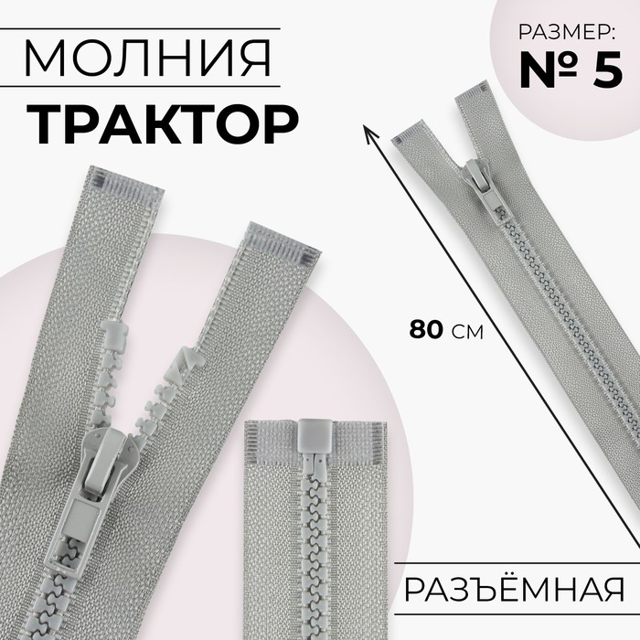 Тракторная молния отличается крупными звеньями. Такая модель подходит для плотных тканей. Используйте её для пошива верхней, спортивной и детской одежды.