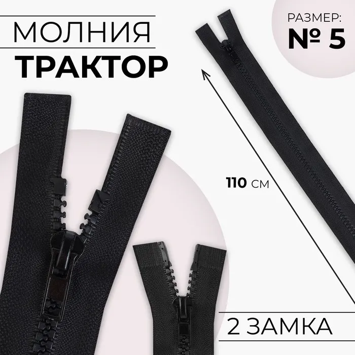 Молния «Трактор», №5, разъёмная, 2 замка, замки автомат, 110 см, чёрная — Характеристики