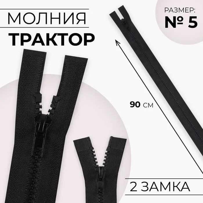 Молния «Трактор», №5, разъёмная, 2 замка, замки автомат, 90 см, чёрная — Характеристики