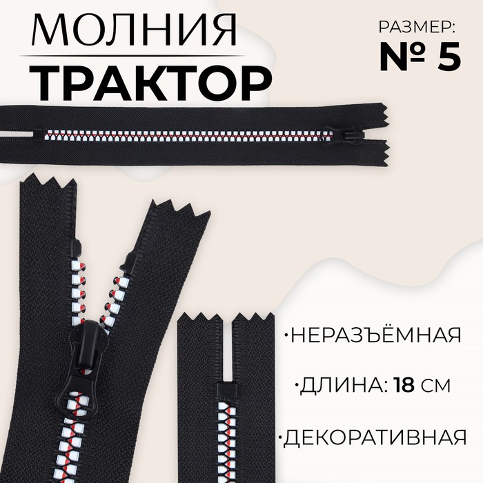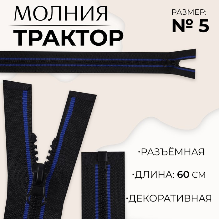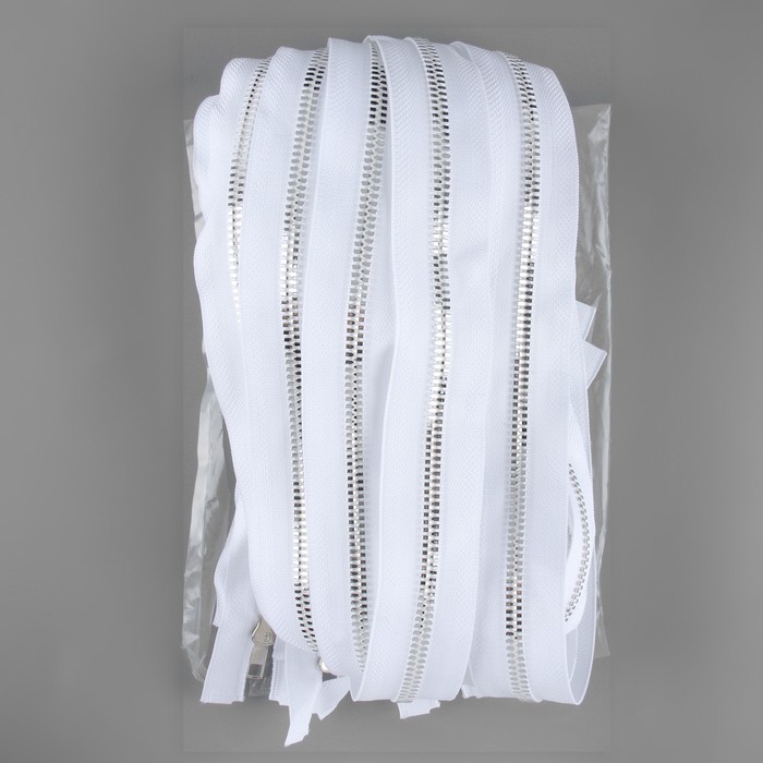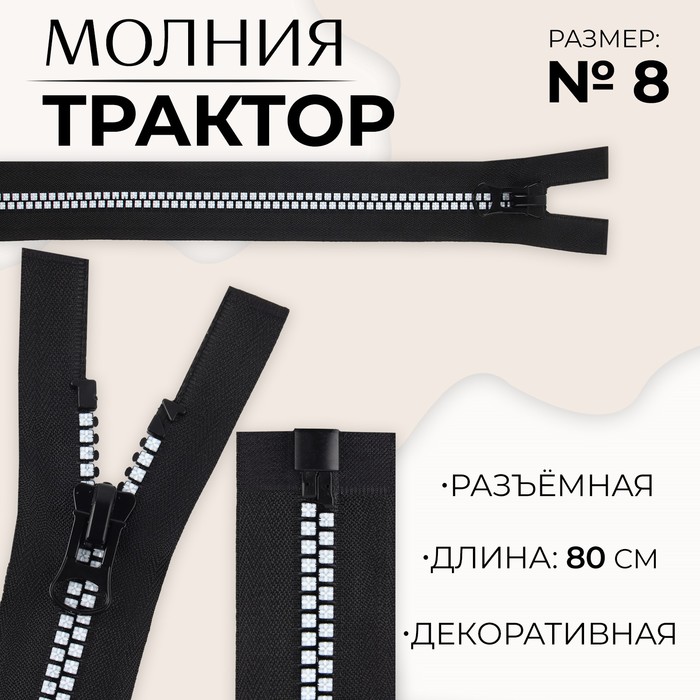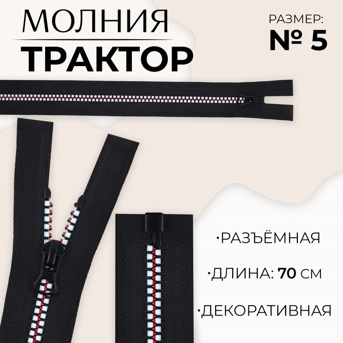 Молния «Трактор», №5, разъёмная, декоративное звено «Акулий зуб», замок автомат, 60 см, цвет белый/серебряный, цена за 1 штуку — Характеристики