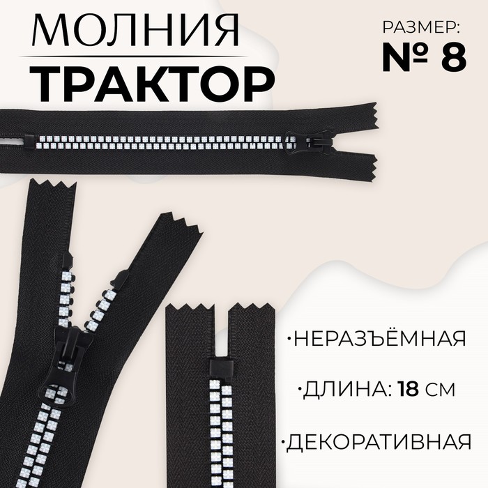 Тракторная молния отличается крупными звеньями. Такая модель подходит для плотных тканей. Используйте её для пошива верхней, спортивной и детской одежды.