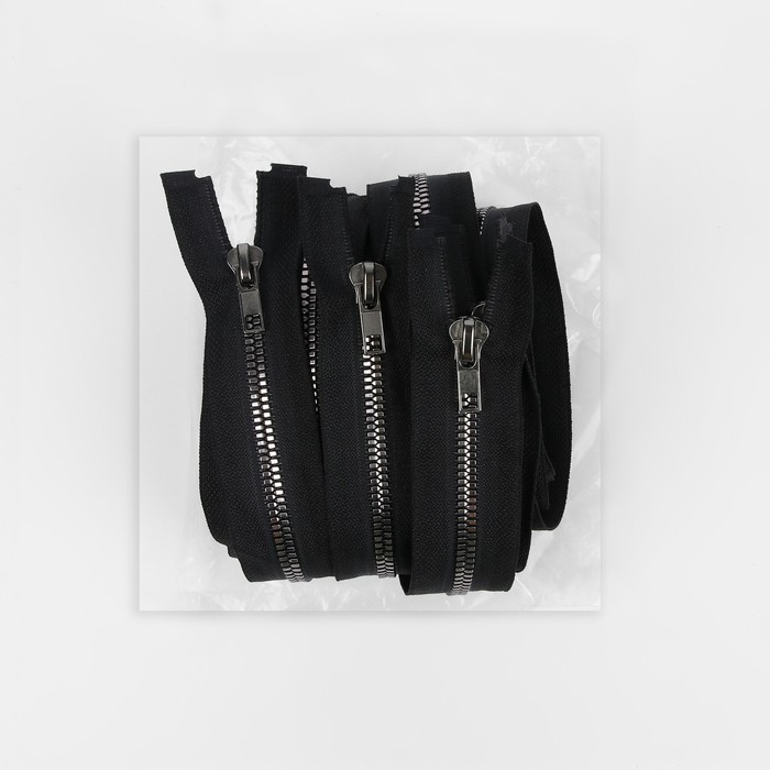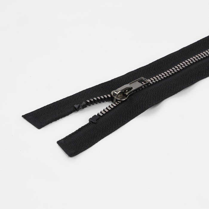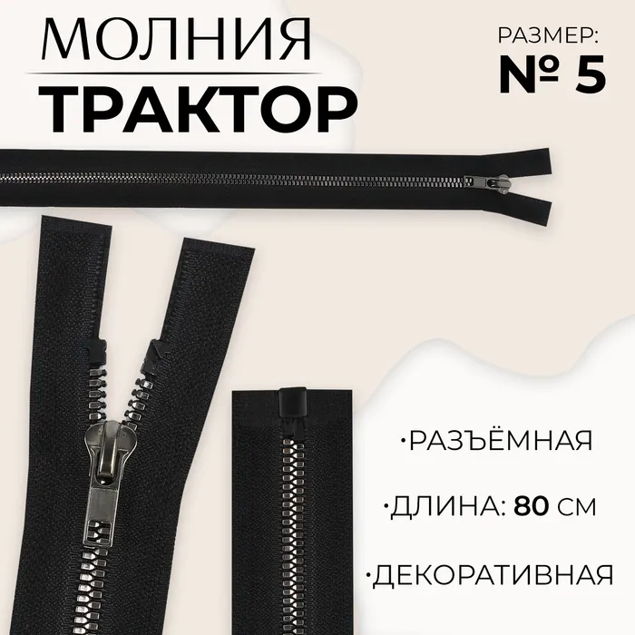 Молния «Трактор», №5, разъёмная, декоративное звено «Акулий зуб», замок автомат, 80 см, цвет чёрный/чёрный никель, цена за 1 штуку — Характеристики