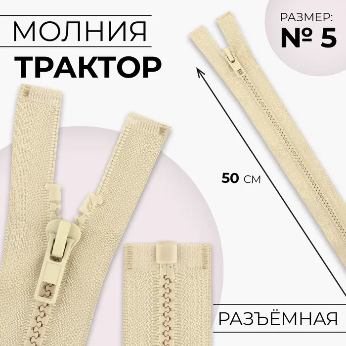 Молния «Трактор», №5, разъёмная, замок автомат, 50 см, бежевая — Характеристики