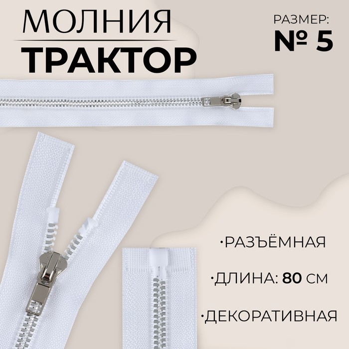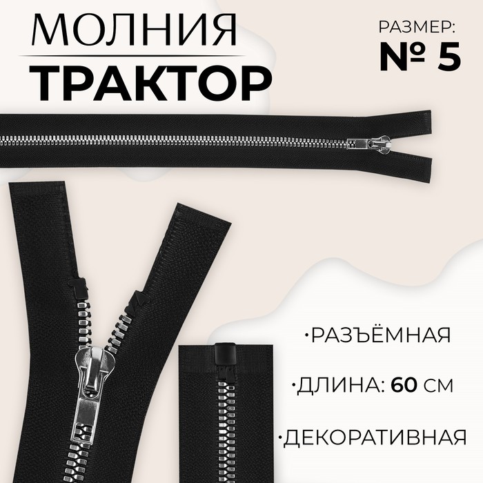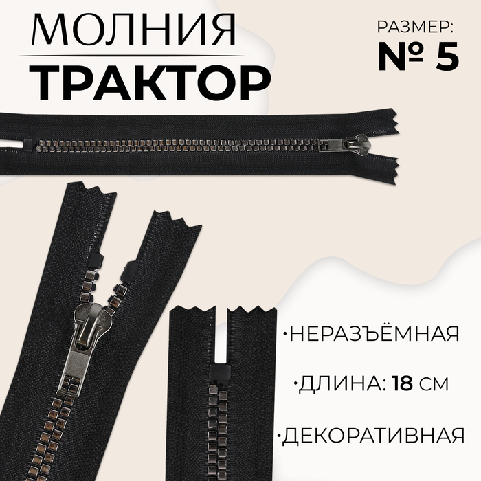 Тракторная молния отличается крупными звеньями. Такая модель подходит для плотных тканей. Используйте её для пошива верхней, спортивной и детской одежды.