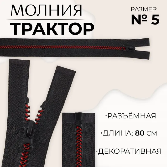 Молния «Трактор», №5, разъёмная, замок автомат, 80 см, чёрная, бордовая — Характеристики