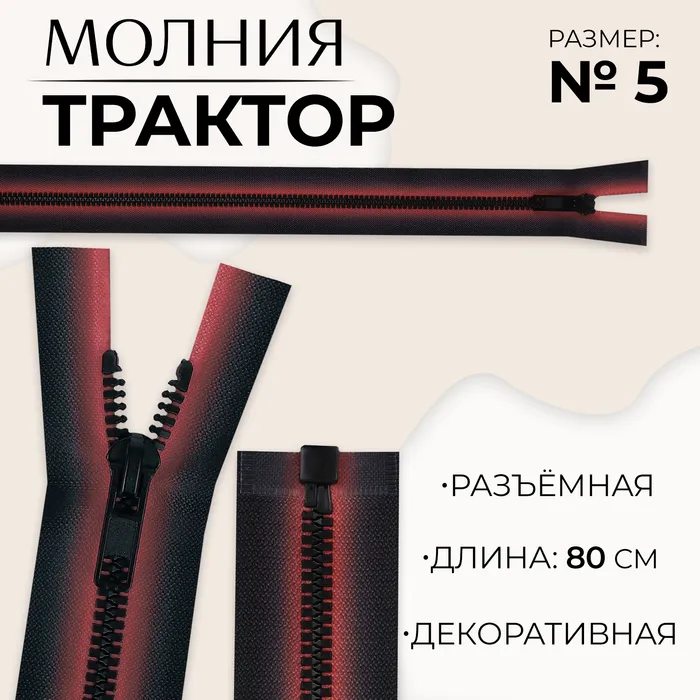 Молния «Трактор», №5, разъёмная, замок автомат, 80 см, красная, чёрная — Характеристики