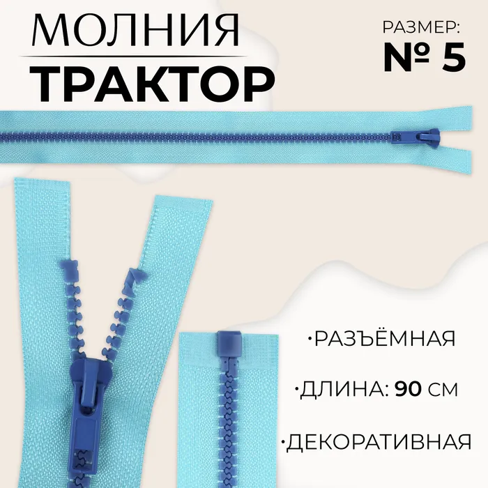 Молния «Трактор», №5, разъёмная, замок автомат, 90 см, голубая — Характеристики